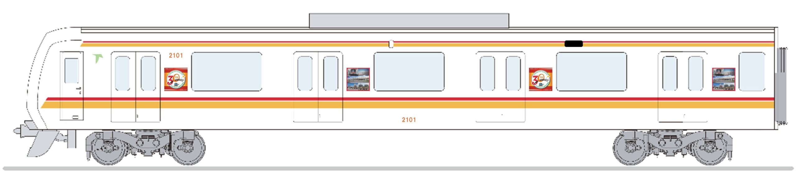 ラッピングを施した特別列車「開業30周年記念トレイン」を運行します。